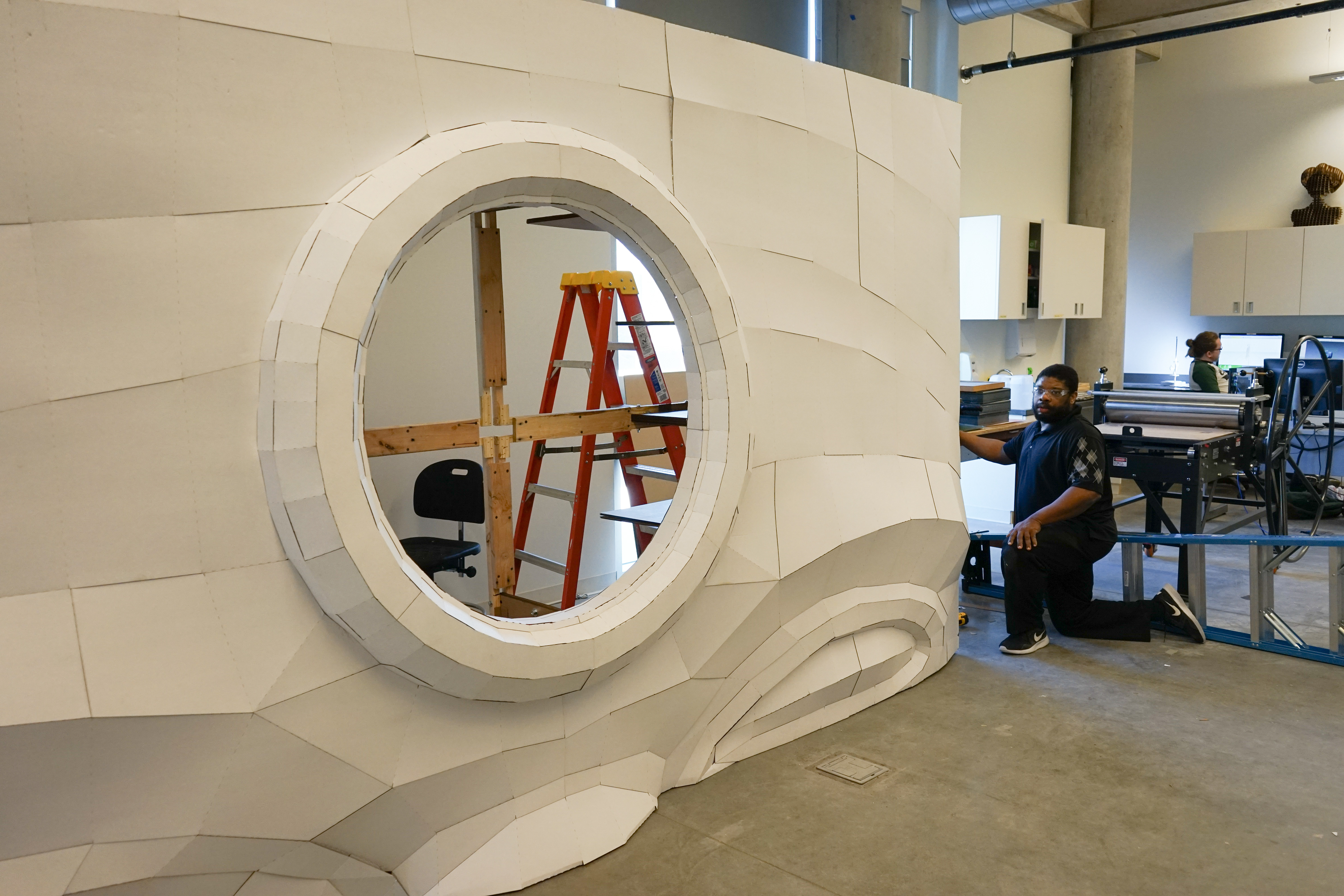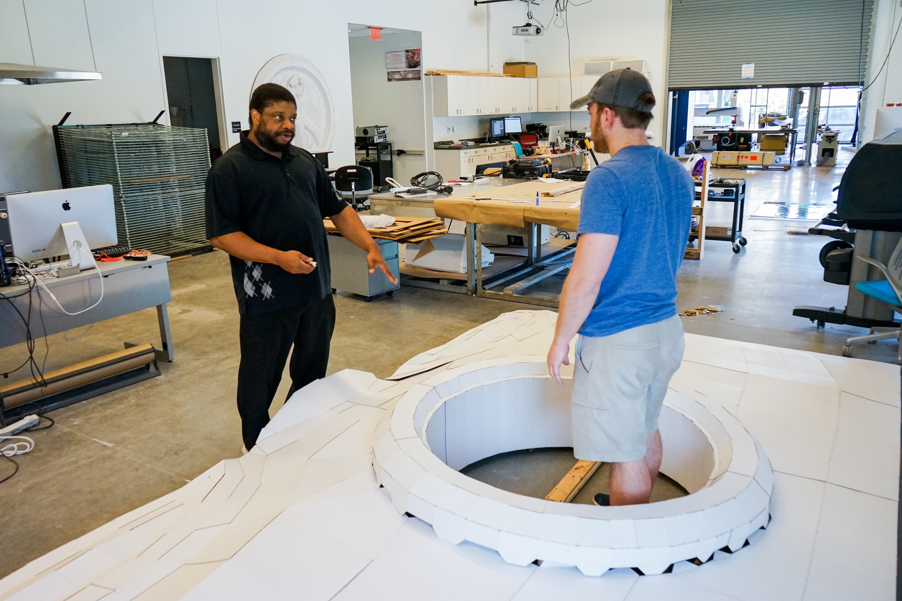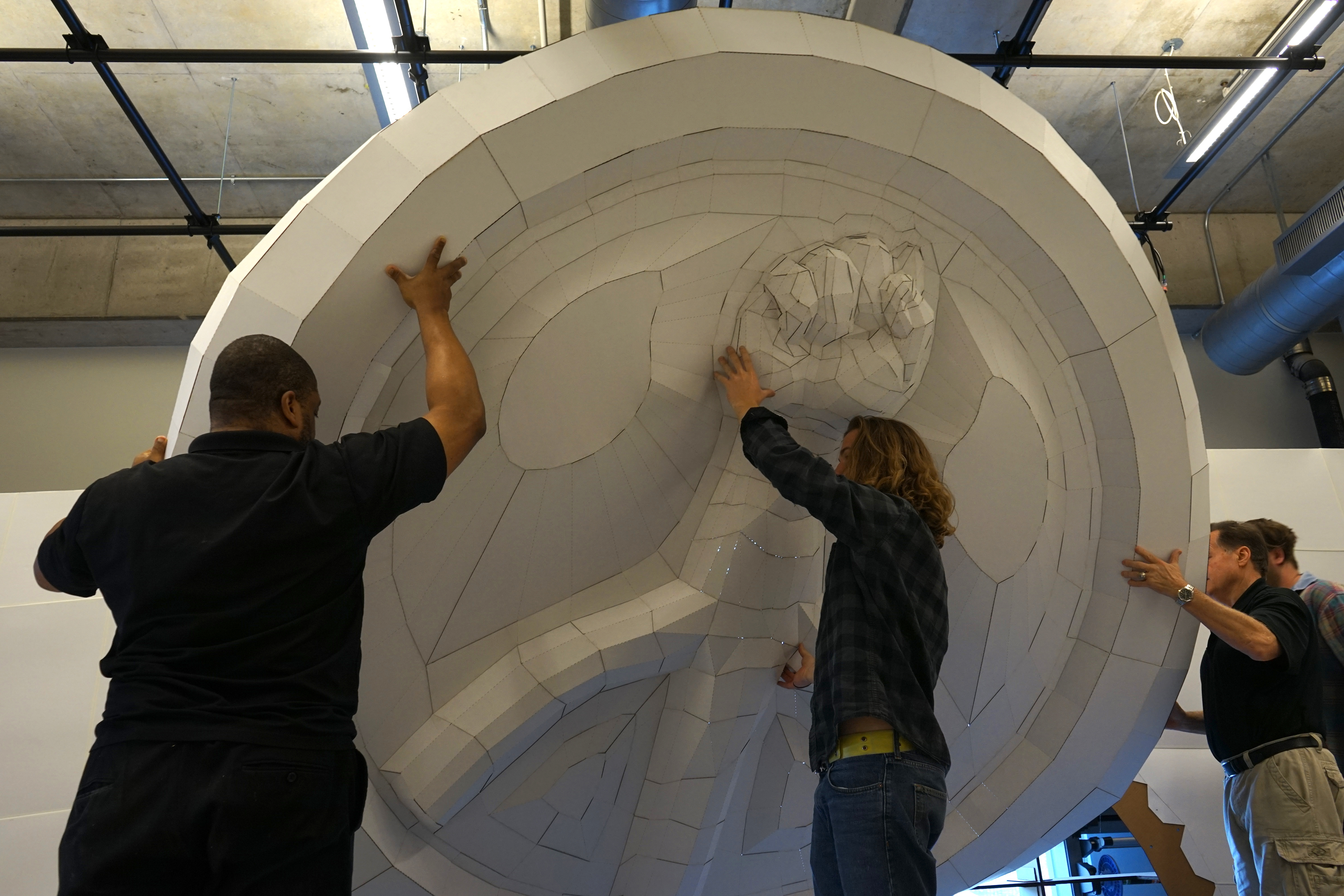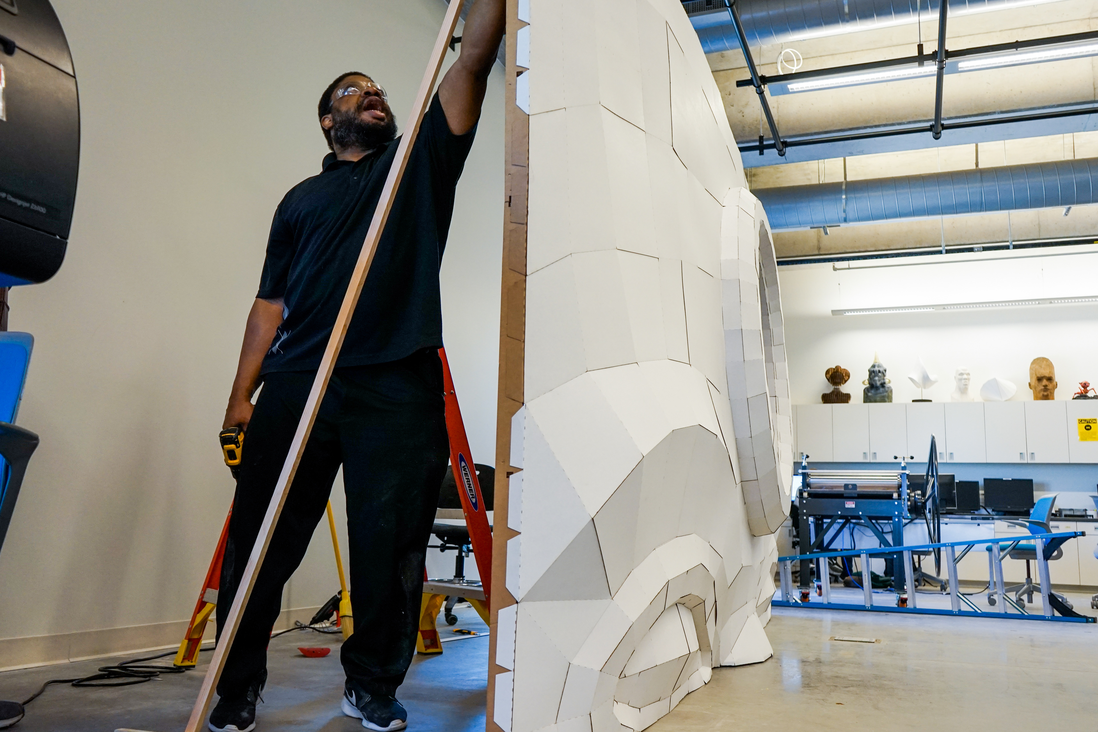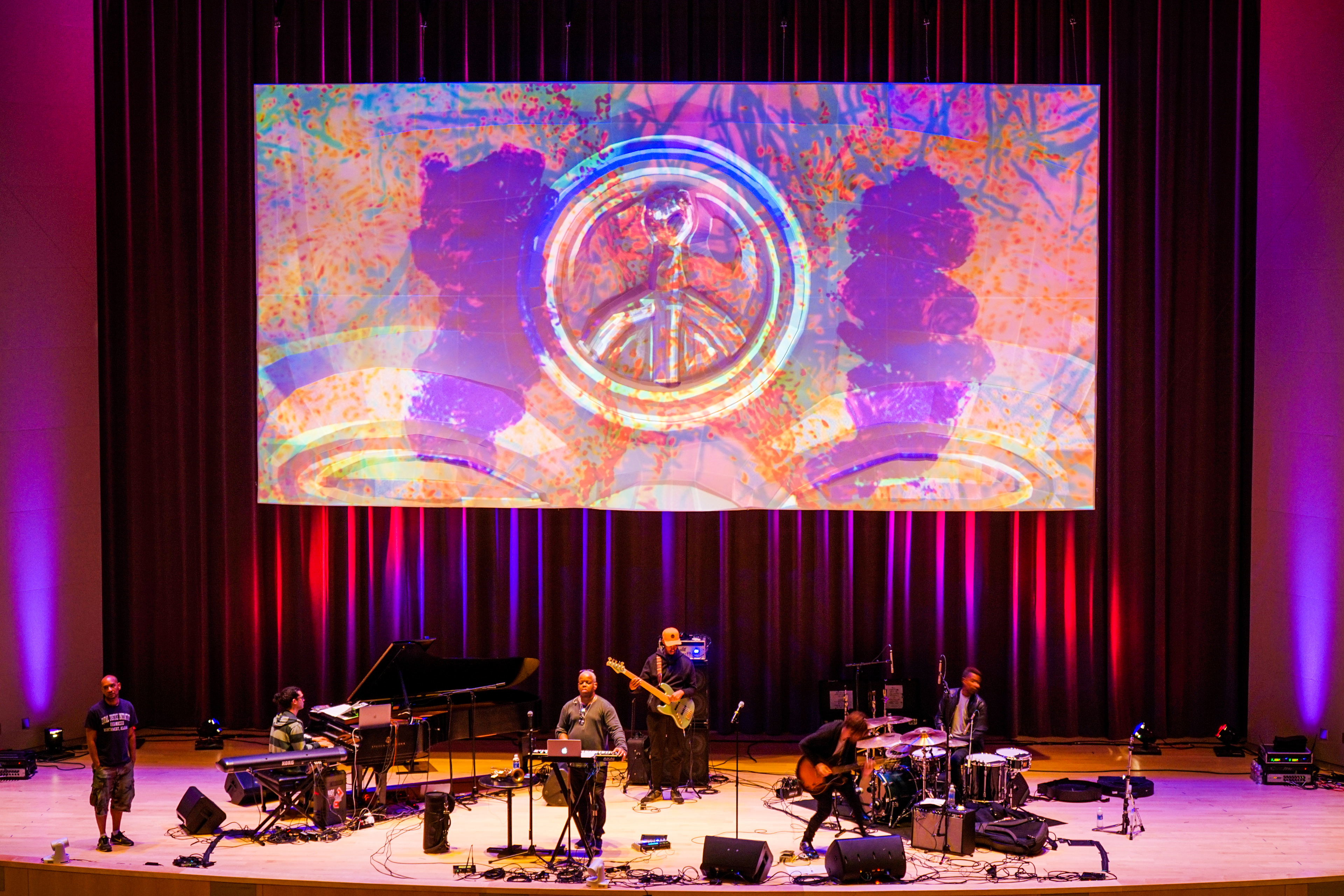 The ATEC team, associate professor Andrew Scott led ATEC students to accomplish this event, adopted the form of a jazz quintet to work together to build sculpture, and to create the video content based on musical compositions provided by jazz composer Terence Blanchard, multi-Grammy award-winning artist, and his band the E-Collective.